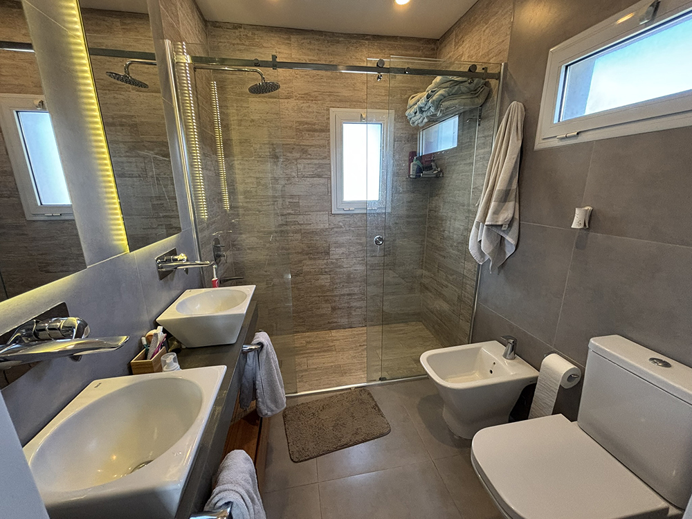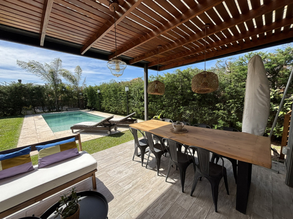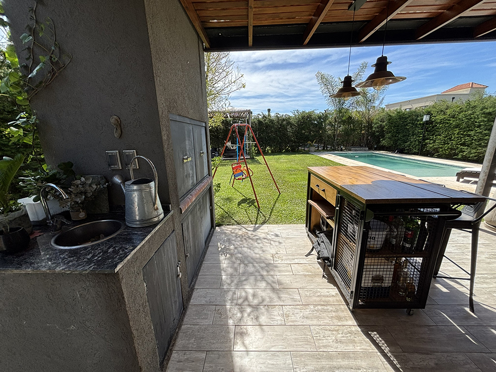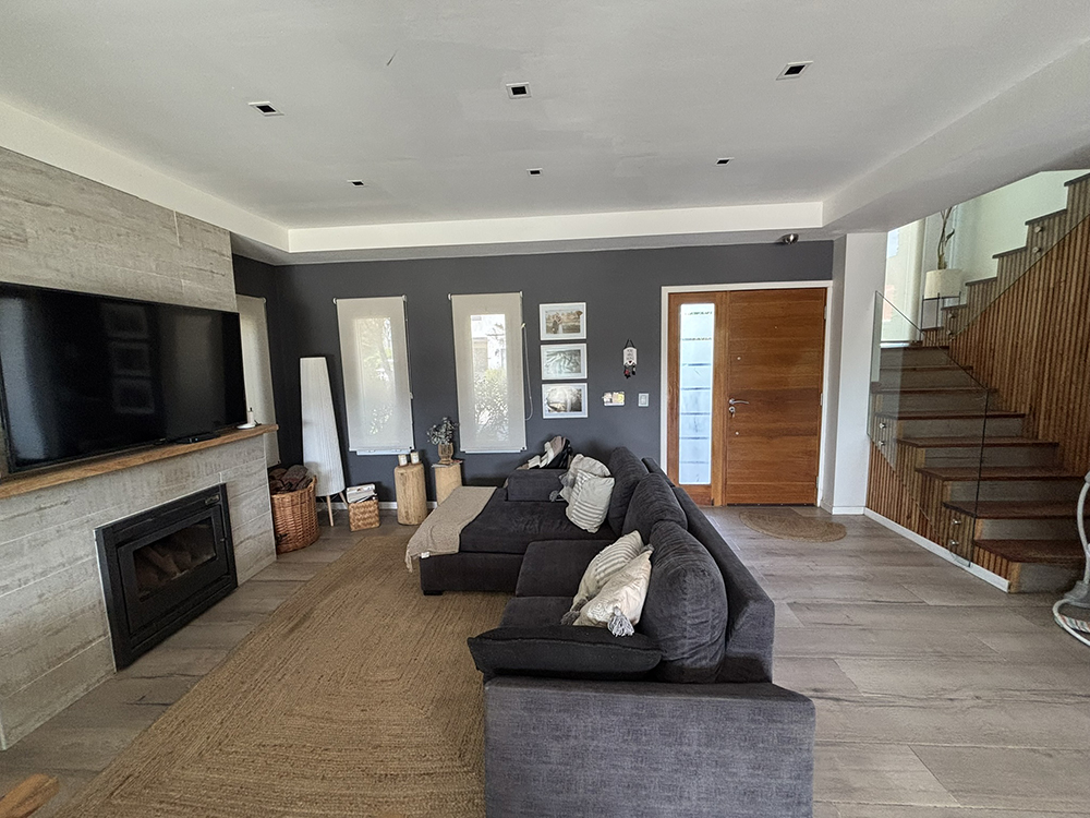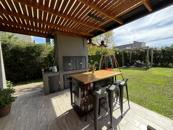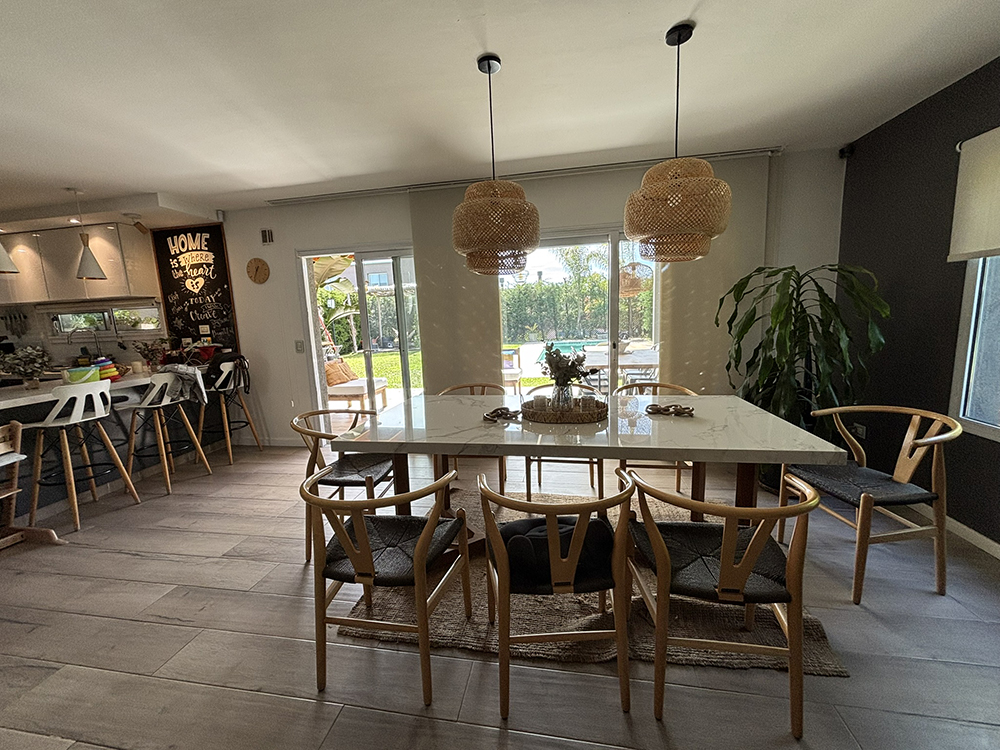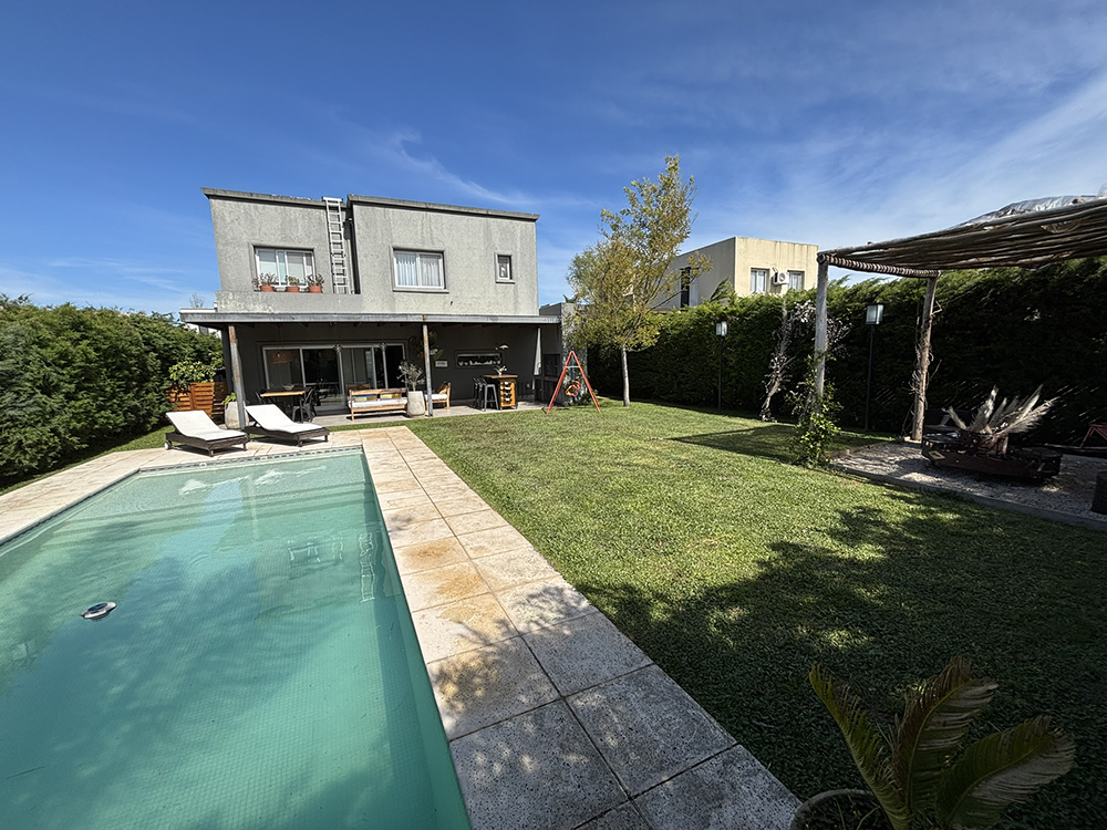 Casa apto crédito – 4 ambientes -Expensas $300,000. El barrio Los Arces está ubicado sobre colectora, en el km 56 de Panamericana Ramal Pilar, Excelente acceso con rápida salida hacia Panamericana. PB. Hall de entrada, living-comedor, toilette, cocina integrada, lavadero. PA. 3 dormitorios.Ppal en suite con vestidor, + 2 dormitorios con placard y 1 baño completo. Exterior: galeria de con parrilla. Fogonero. Pileta 8×4 con venecitas y filtro. Riego automatico. Jardin parquizado. Caracteristicas: Lote central con orientacion Norte. Losa radiante y 4 AA. Piso porcelanato en toda la casa. Aberturas doble vidrio. Chimenea tromen. 6 años de antigüedad en 2 plantas. Cochera semicubierta para 2 autos. Amenities: cancha futbol, sum y pileta. Semicubierto 45m2 – cub 150m2 – 440m2 total