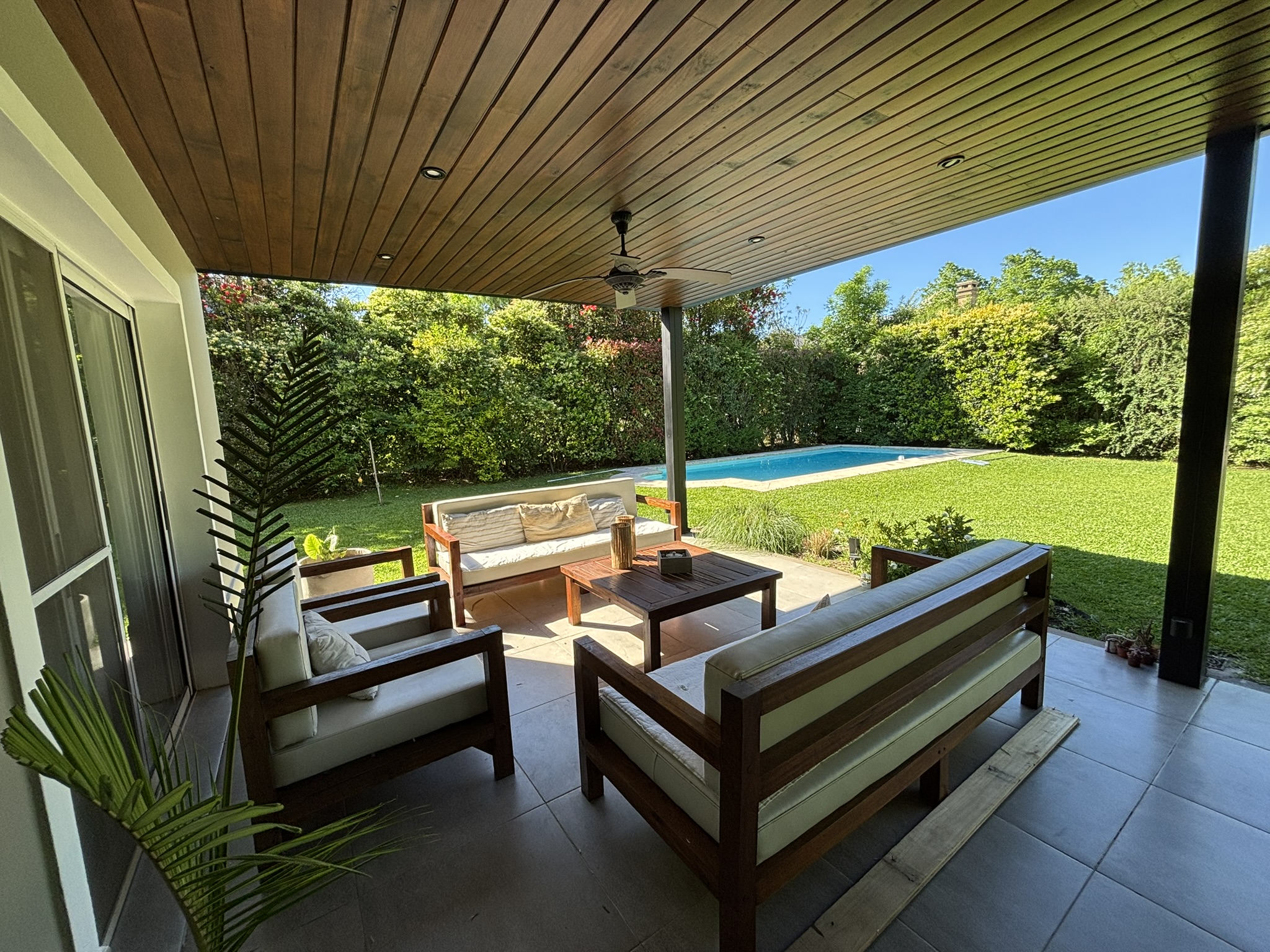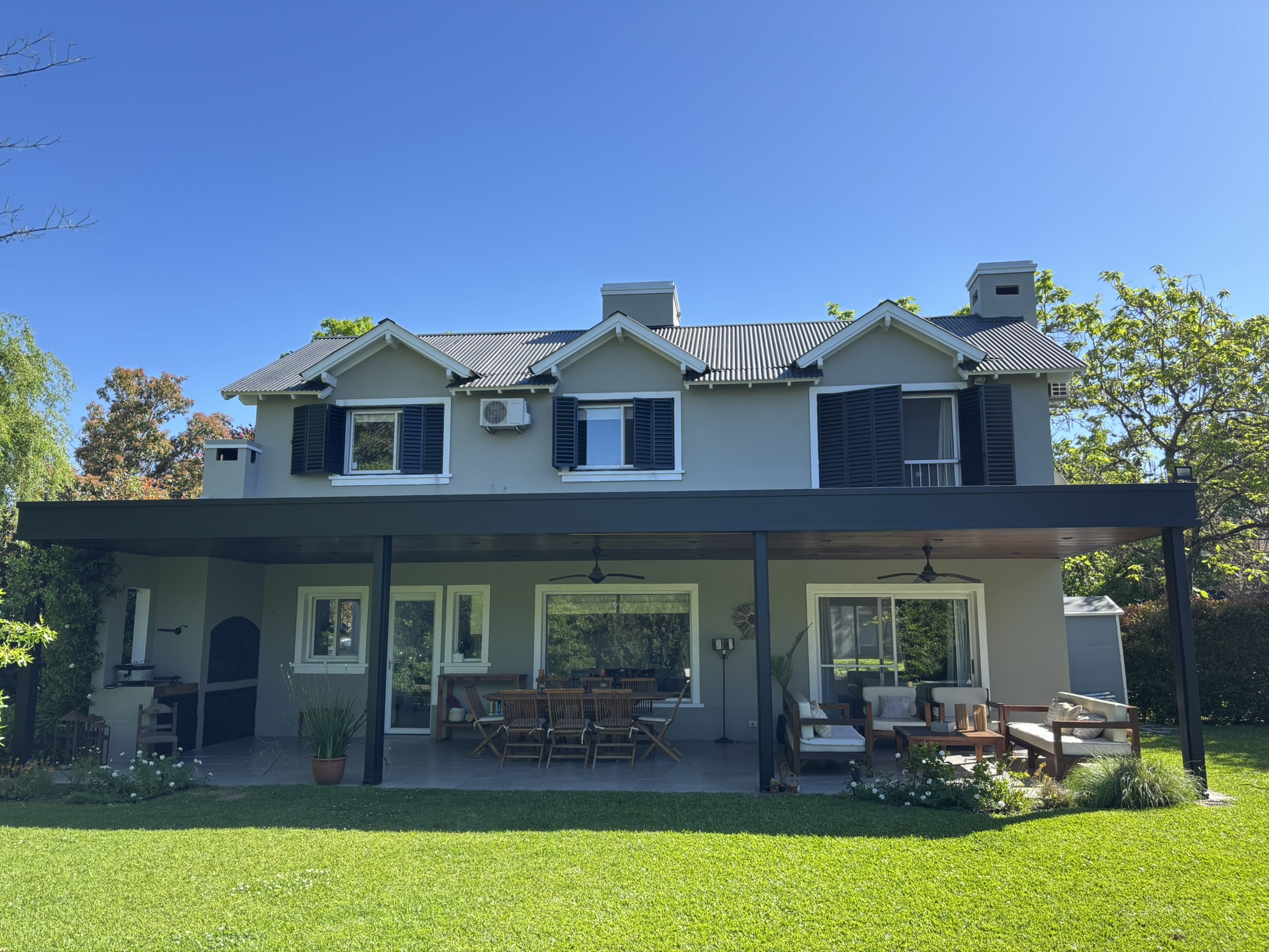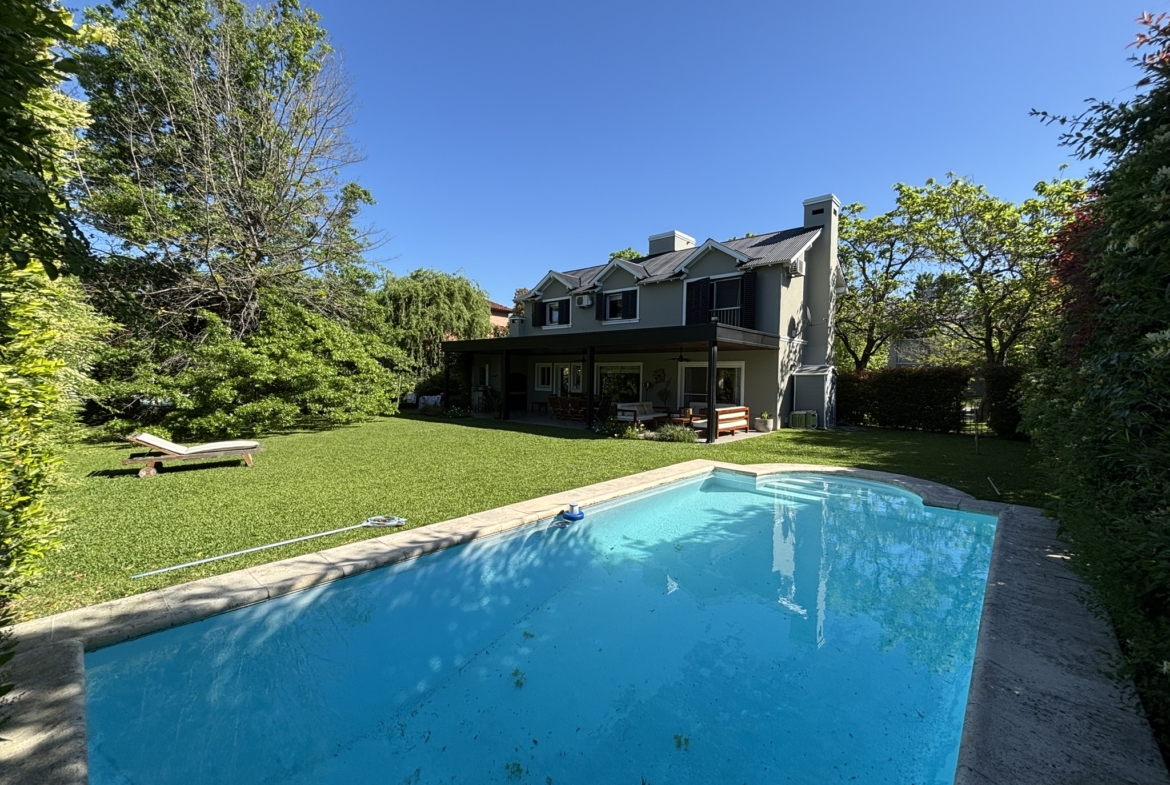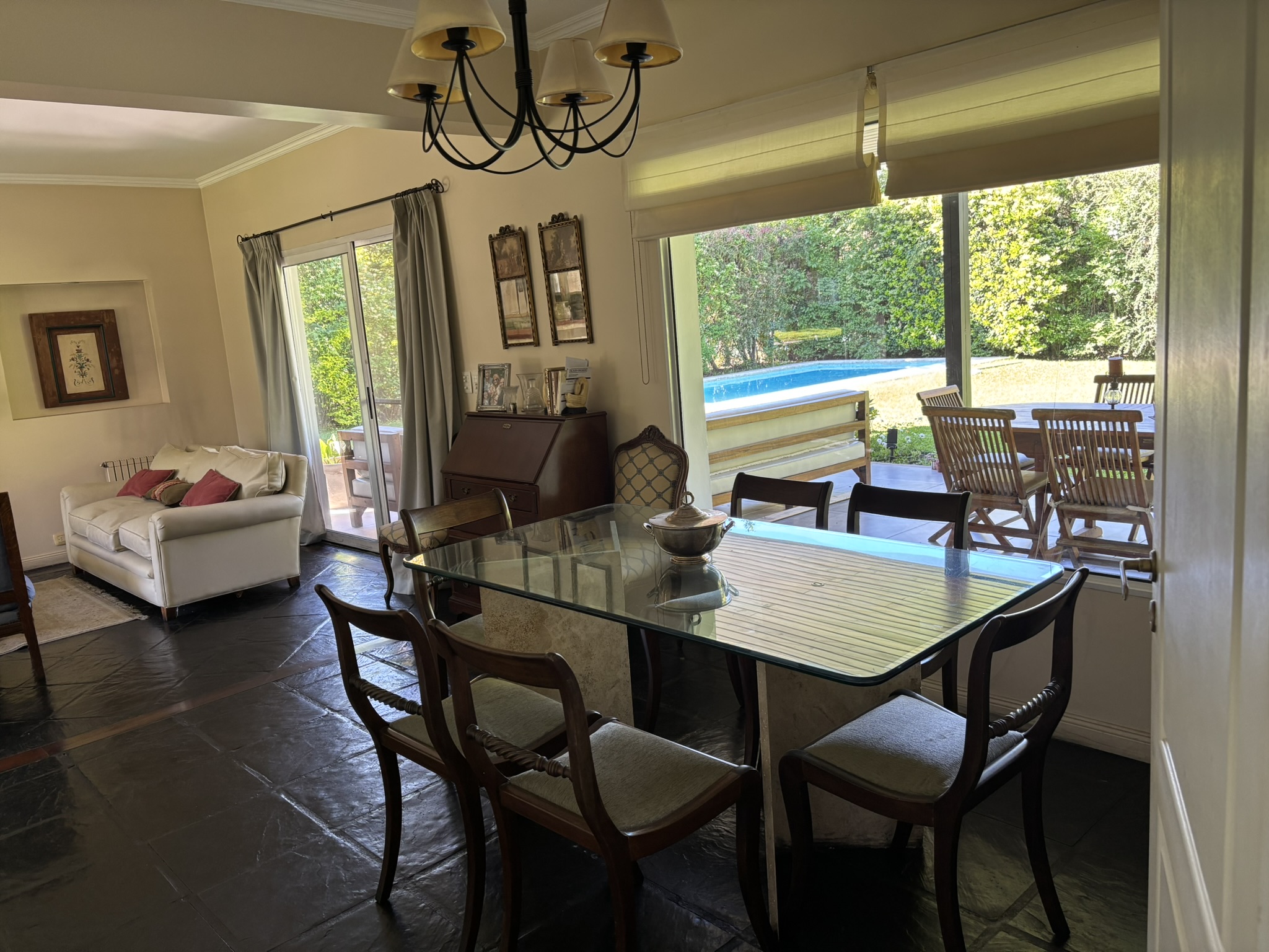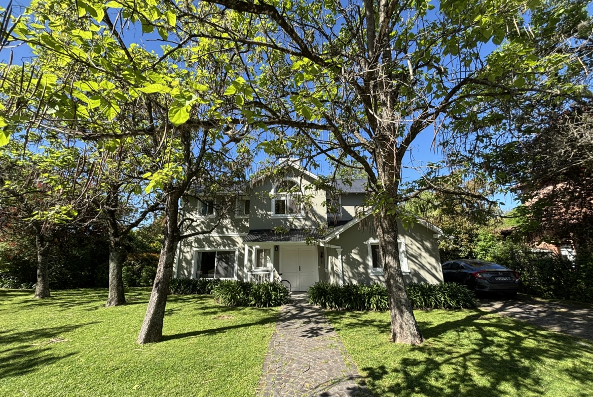 Alquiler temporario Enero completo desde el 30/12 a USD 4500. Enero desde el 10/01 USD 3000. Febrero completo USD 3500. Los precios incluyen expensas y gastos incluidos, excepto electricidad. Lindisima casa en alquiler temporario de 4 ambientes en barrio Senderos 2, Manuel Alberti, Pilar. Excelente ubicación desde ramal pilar bajada km 39, muy cerca del centro comercial «las piedras». PB: Hall de entrada, toilette, living-comedor , amplia cocina con lavedero aparte y entrada por costado, dependencia con baño completo. PA: 3 dormitorios y 2 baños completos. Ppal en suite. Todos con placards y aire acondicionados. Exterior: Enorme galeria de 50m2 con parrilla, jardin y pileta de 8x4m2. Orientación Noreste con mucha iluminación. Es un lote central con muy linda arboleda. Se aceptan mascotas