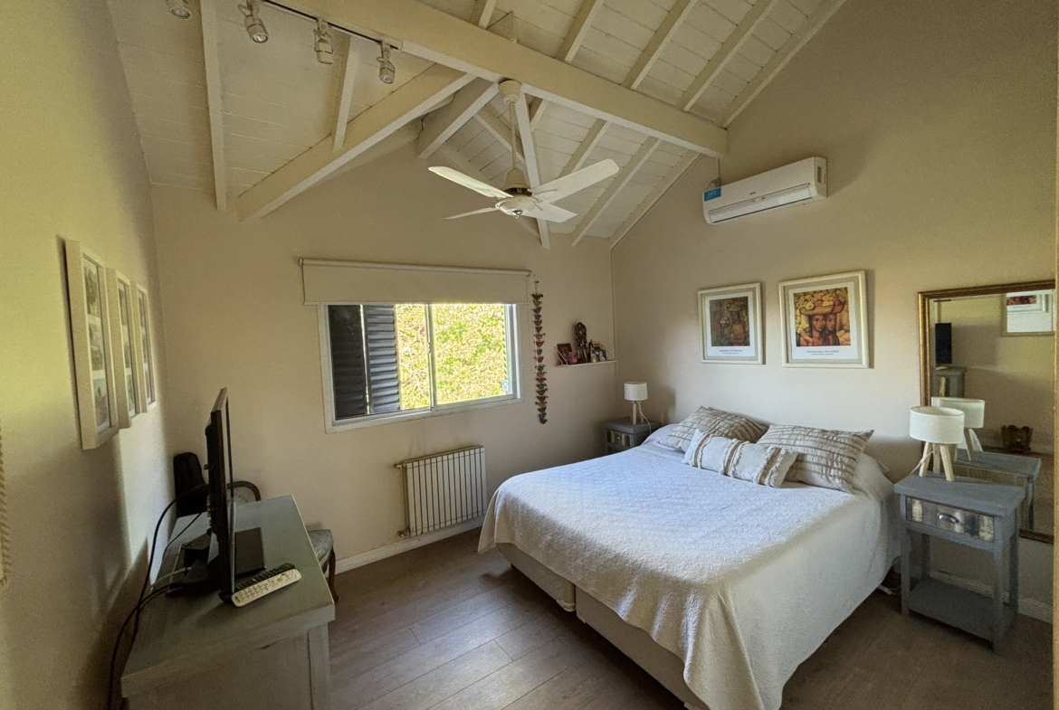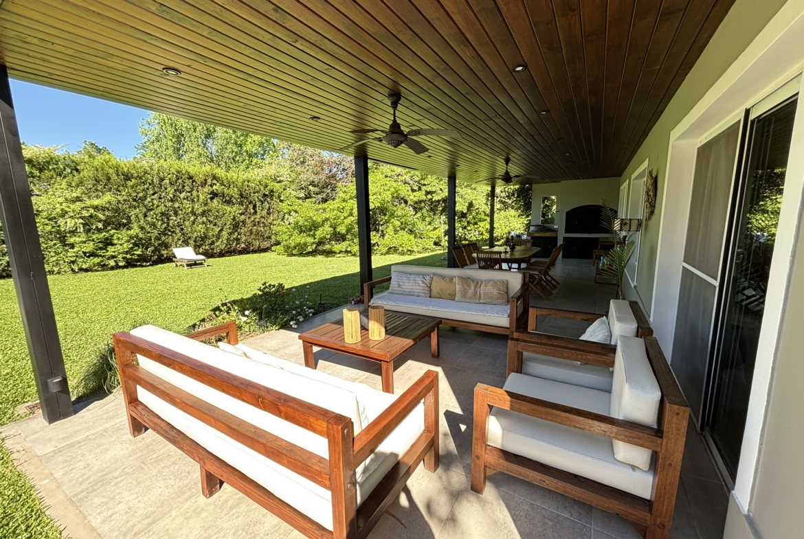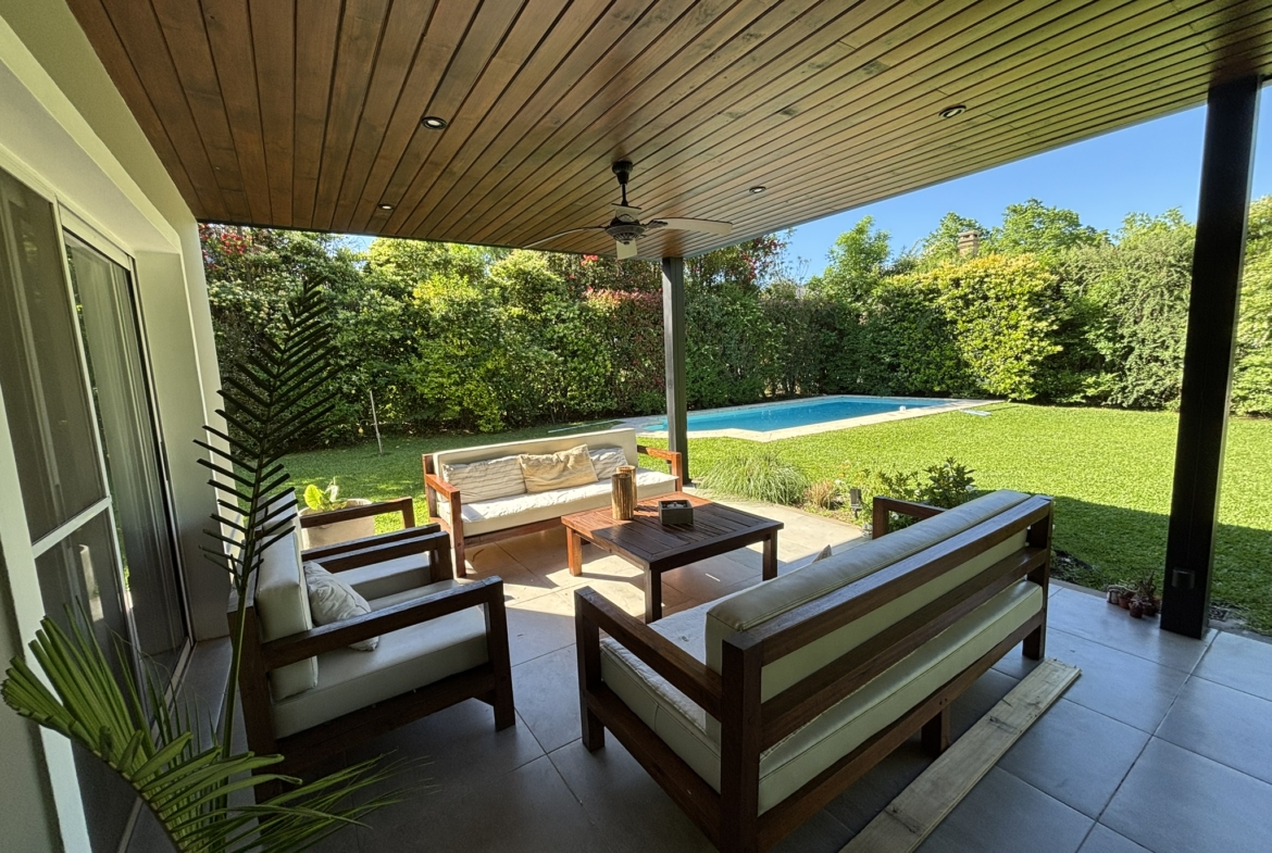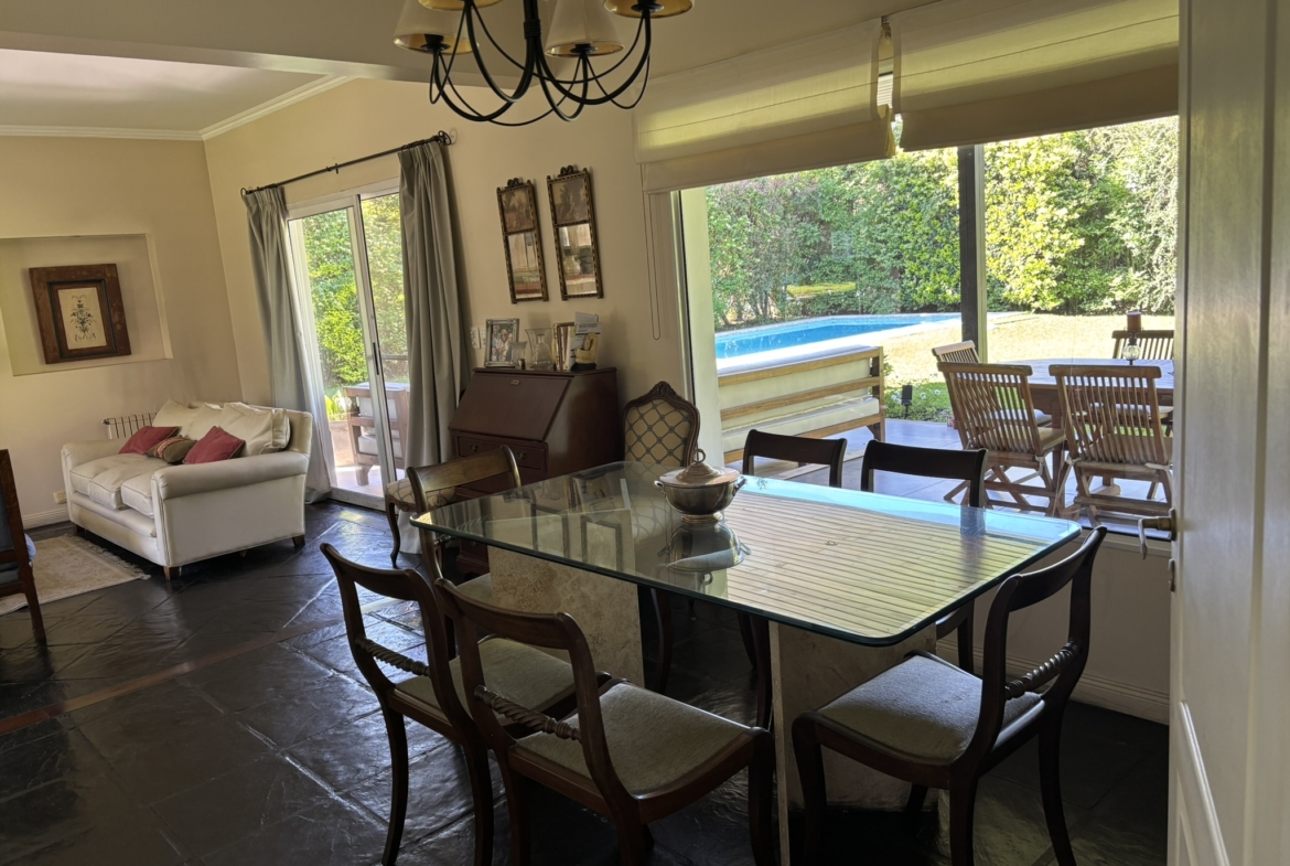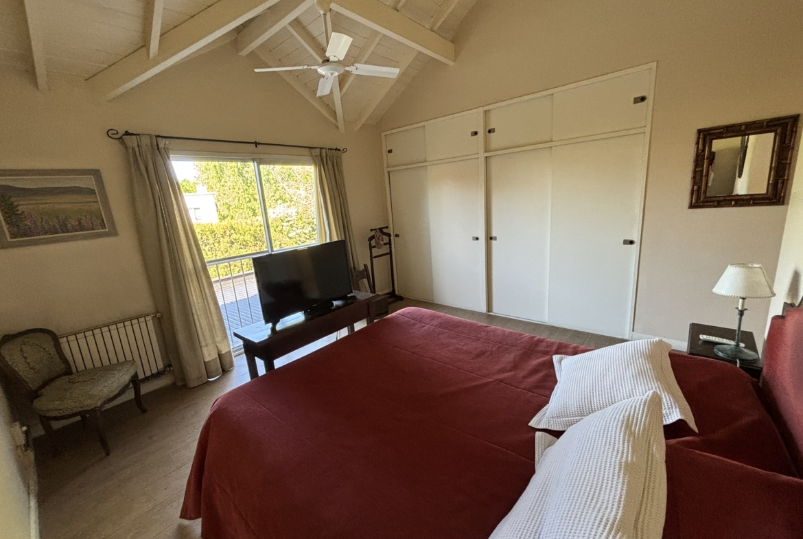 Alquiler temporario Enero completo desde el 30/12 a USD 4500. Enero desde el 10/01 USD 3000. Febrero completo USD 3500. Los precios incluyen expensas y gastos incluidos, excepto electricidad. Lindisima casa en alquiler temporario de 4 ambientes en barrio Senderos 2, Manuel Alberti, Pilar. Excelente ubicación desde ramal pilar bajada km 39, muy cerca del centro comercial «las piedras». PB: Hall de entrada, toilette, living-comedor , amplia cocina con lavedero aparte y entrada por costado, dependencia con baño completo. PA: 3 dormitorios y 2 baños completos. Ppal en suite. Todos con placards y aire acondicionados. Exterior: Enorme galeria de 50m2 con parrilla, jardin y pileta de 8x4m2. Orientación Noreste con mucha iluminación. Es un lote central con muy linda arboleda. Se aceptan mascotas