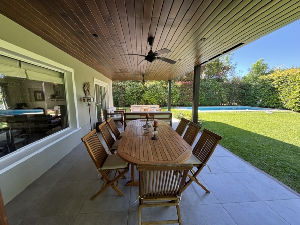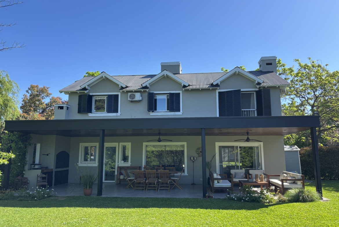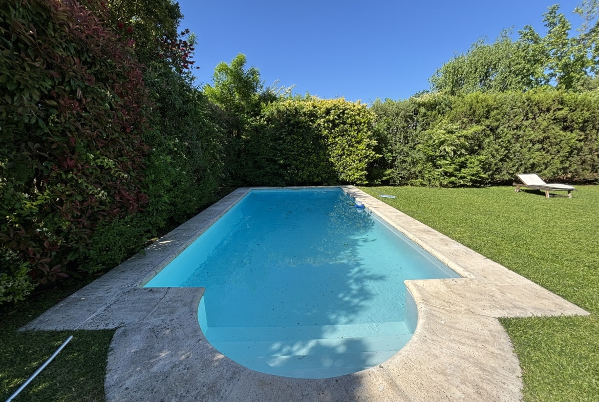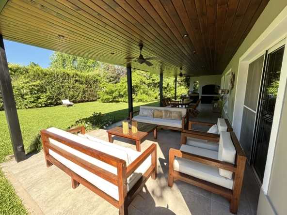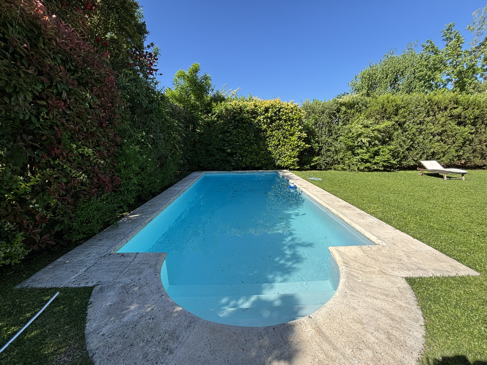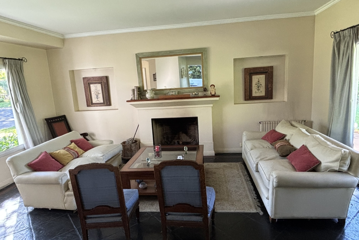 Alquiler temporario Enero completo desde el 30/12 a USD 4500. Enero desde el 10/01 USD 3000. Febrero completo USD 3500. Los precios incluyen expensas y gastos incluidos, excepto electricidad. Lindisima casa en alquiler temporario de 4 ambientes en barrio Senderos 2, Manuel Alberti, Pilar. Excelente ubicación desde ramal pilar bajada km 39, muy cerca del centro comercial «las piedras». PB: Hall de entrada, toilette, living-comedor , amplia cocina con lavedero aparte y entrada por costado, dependencia con baño completo. PA: 3 dormitorios y 2 baños completos. Ppal en suite. Todos con placards y aire acondicionados. Exterior: Enorme galeria de 50m2 con parrilla, jardin y pileta de 8x4m2. Orientación Noreste con mucha iluminación. Es un lote central con muy linda arboleda. Se aceptan mascotas