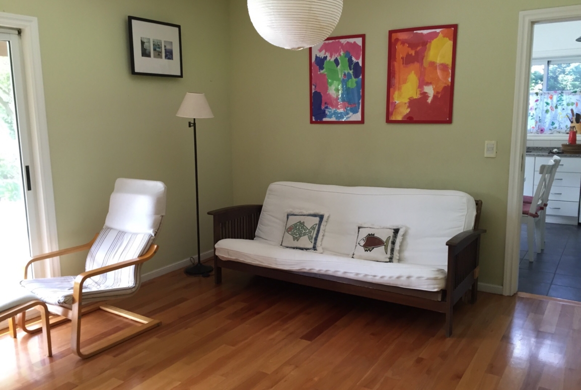 Muy linda y simpática casa en venta que consta de  dos dormitorios más escritorio, toilette y dependencias. El dormitorio ppal tiene vestidor. El baño que comparten tiene dos puertas. La cocina tiene espacio para comedor diario. El living posee un hogar y el comedor puede convertirse en family.
