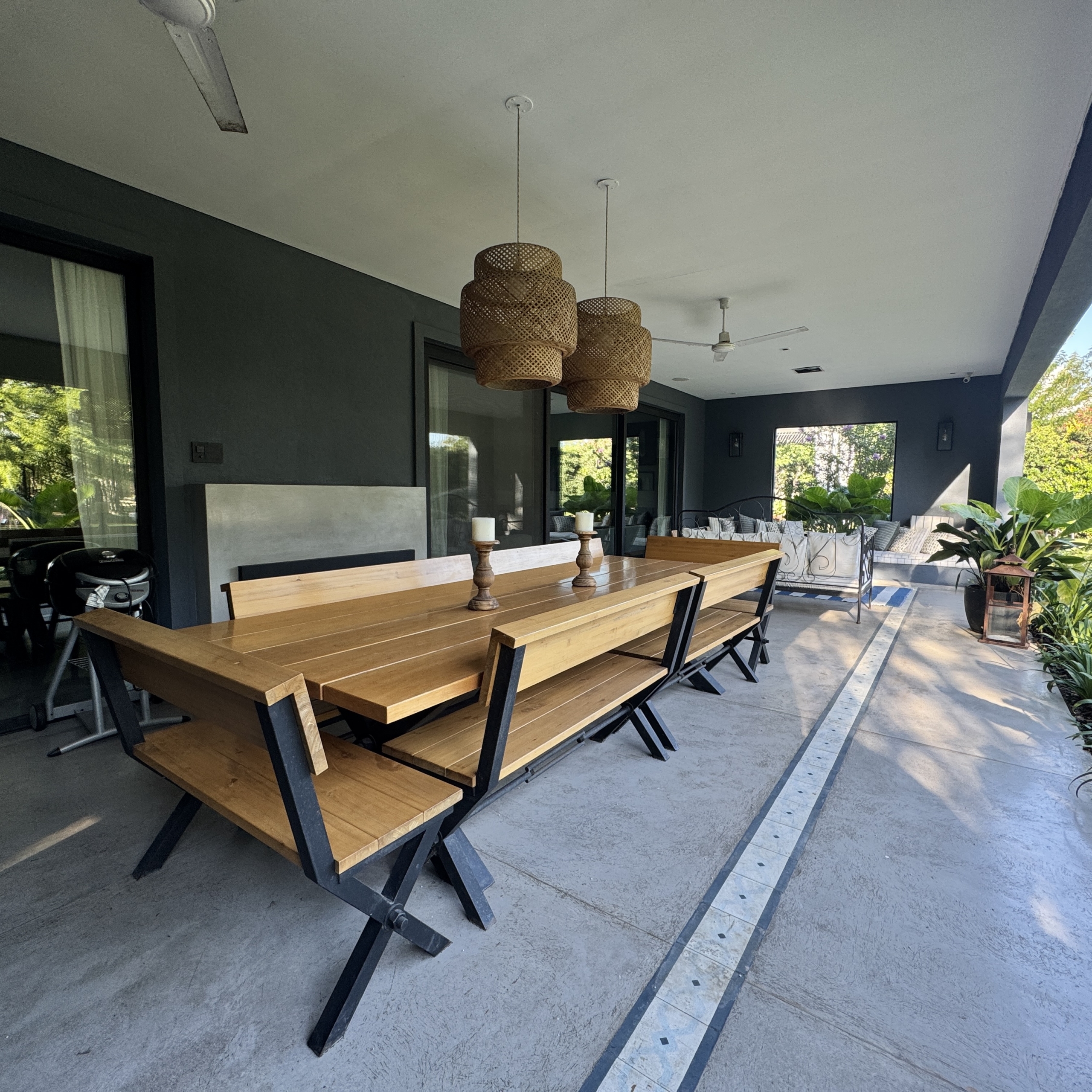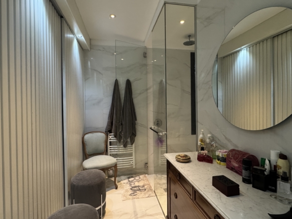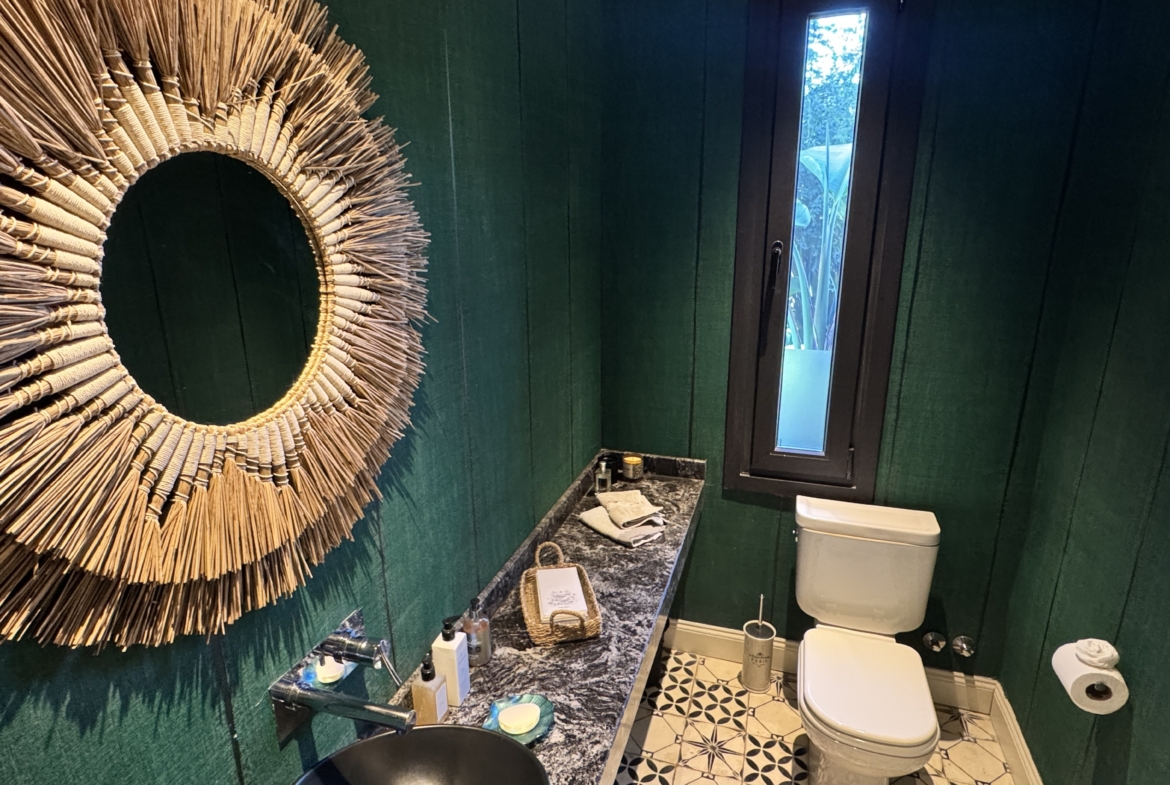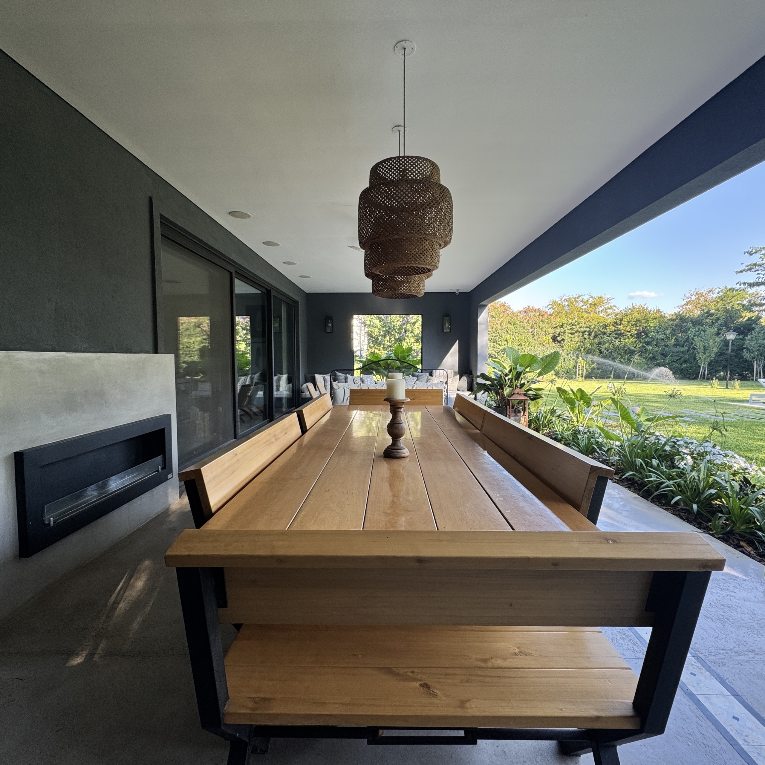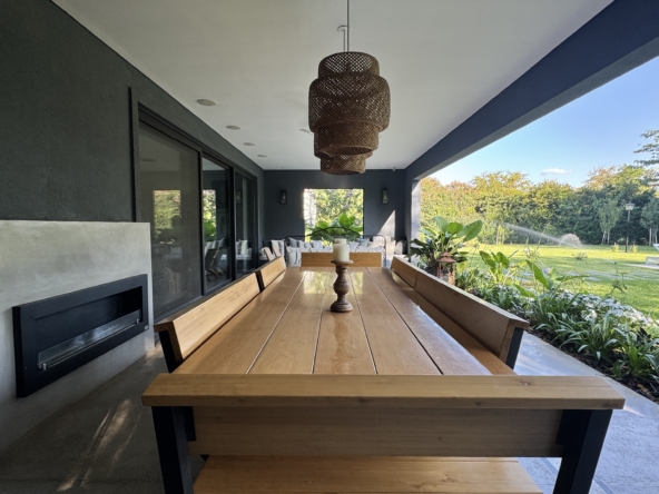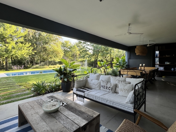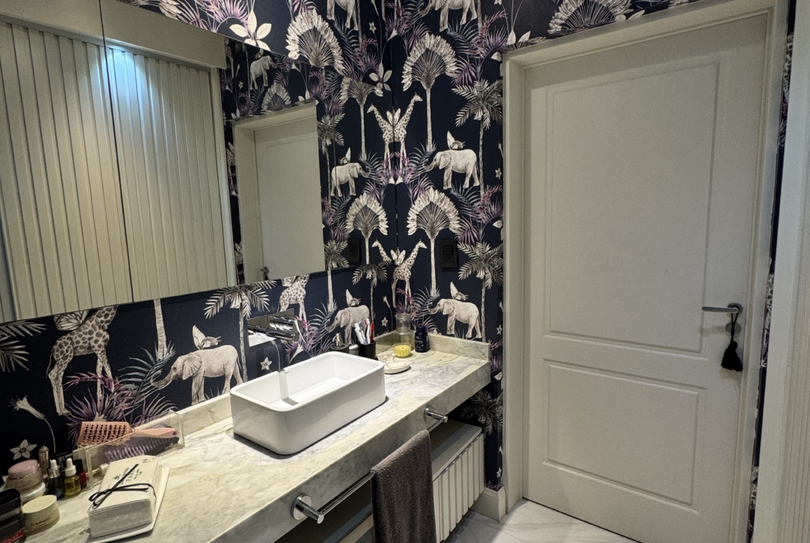 En el exterior, el jardín se presenta totalmente parquizado sobre un amplio lote interno, generando un entorno de gran privacidad. La galería con parrilla invita a disfrutar reuniones al aire libre, acompañada por una gran piscina revestida en venecitas y un atractivo sector de fogonero que completa un espacio pensado para disfrutar todo el año.