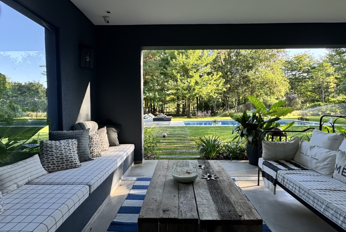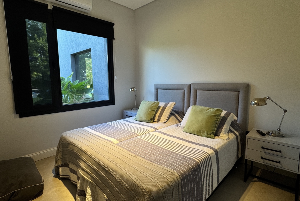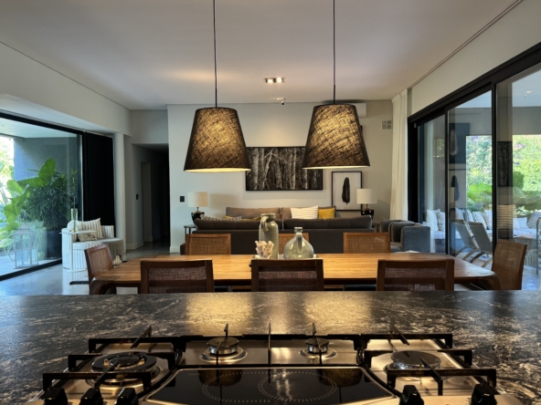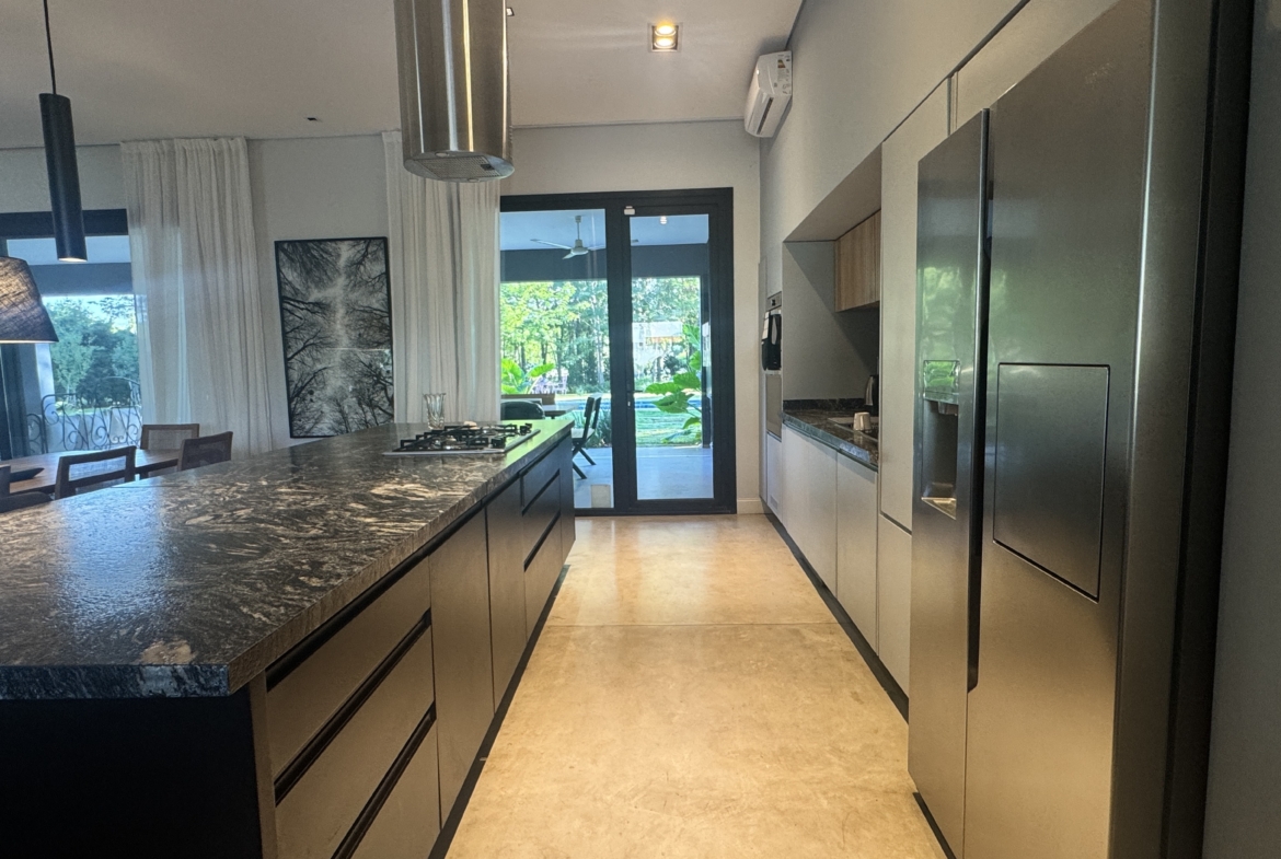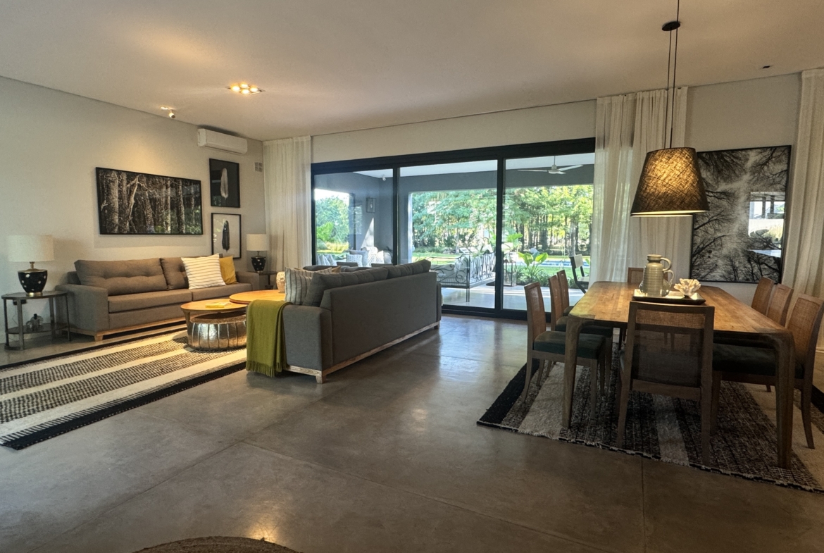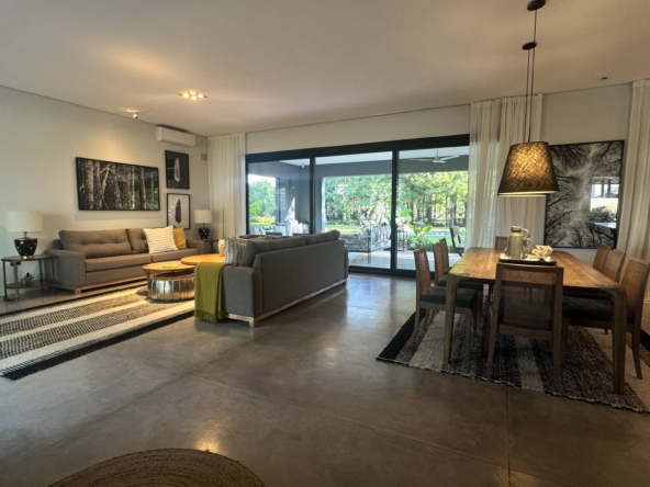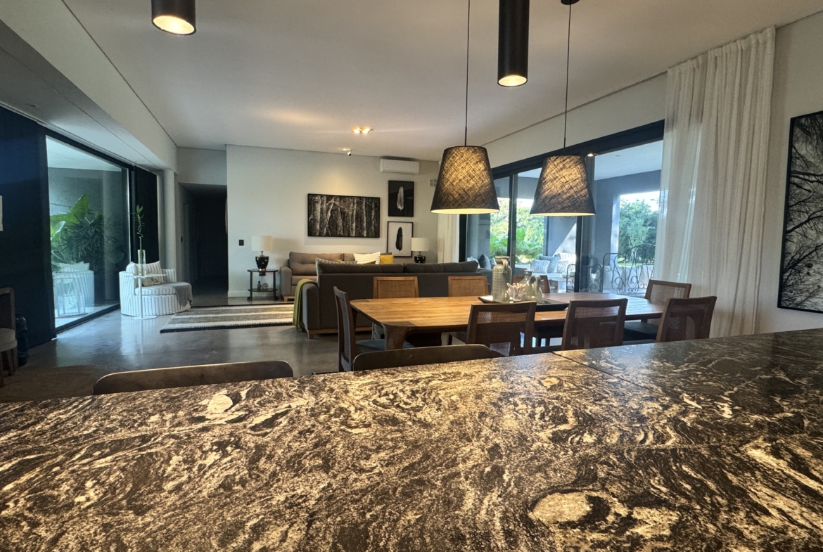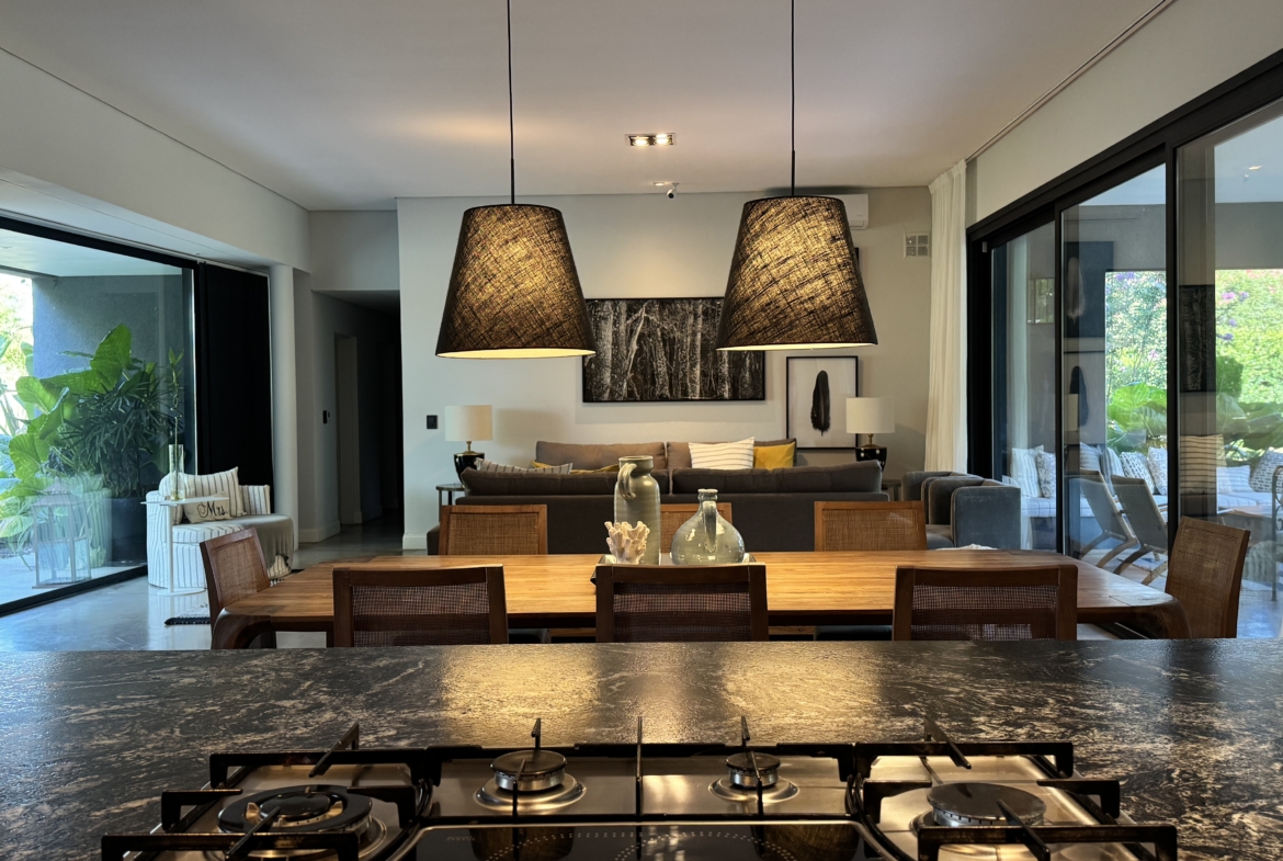 La casa se desarrolla íntegramente en una planta y cuenta con un luminoso living comedor integrado a la cocina, con moderna isla central y sector de coffee station, ideal para disfrutar los momentos cotidianos. El área privada ofrece tres dormitorios, con una suite principal y dos dormitorios adicionales que comparten un baño completo. Además, dispone de toilette de recepción.