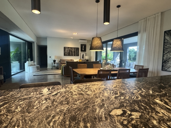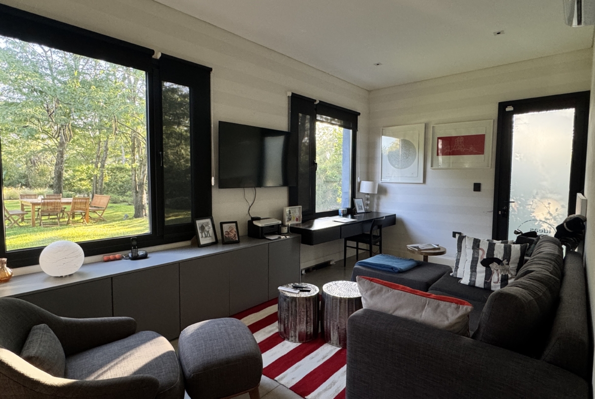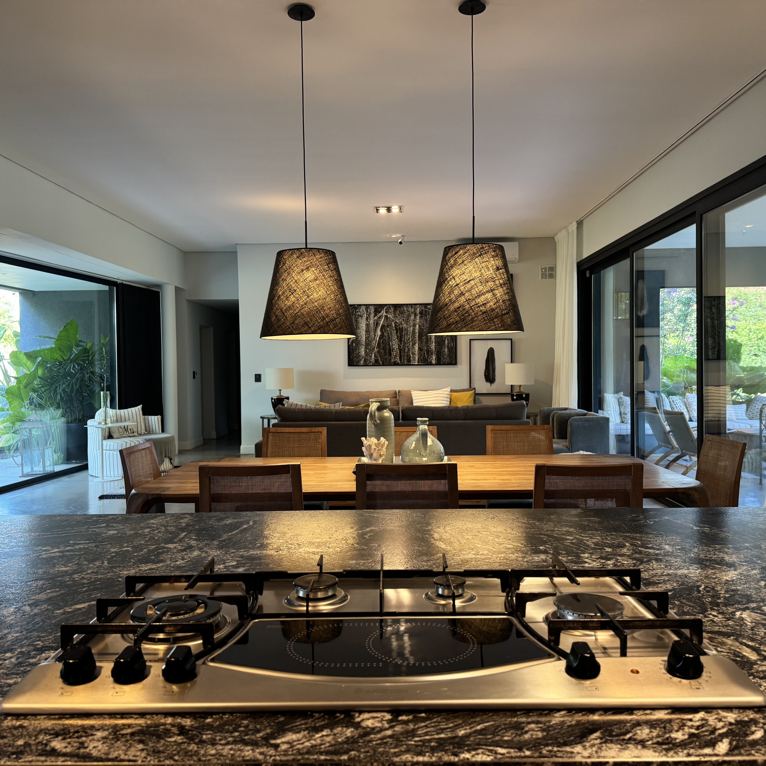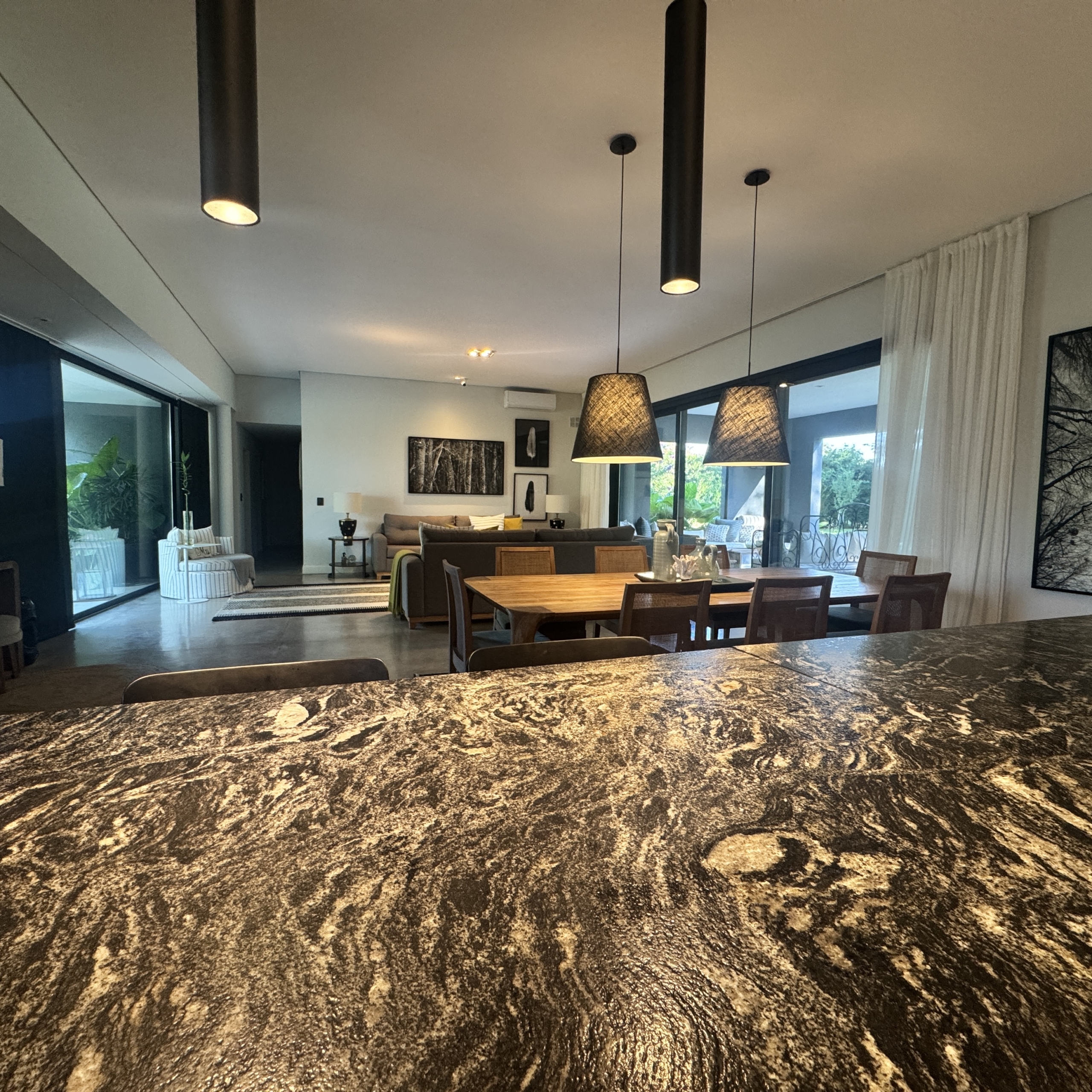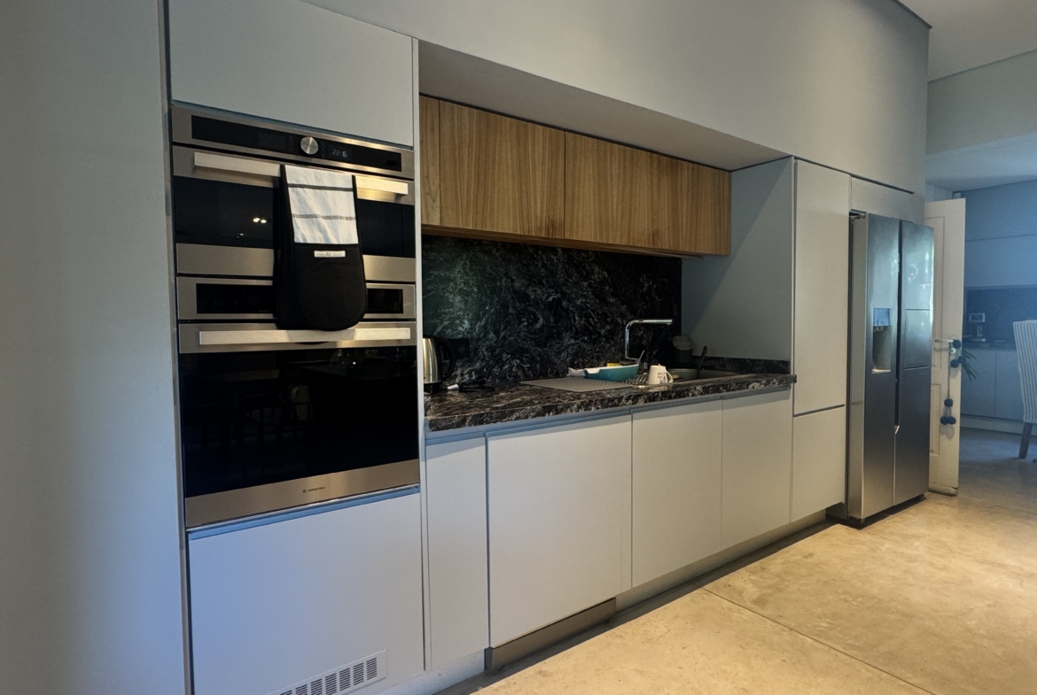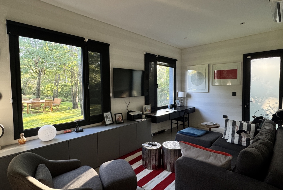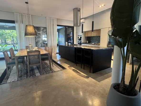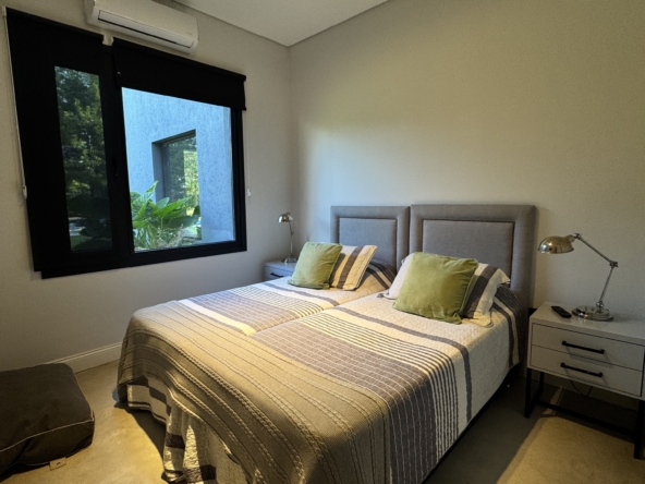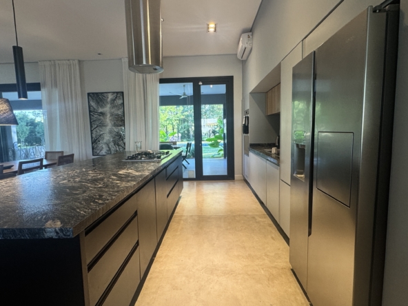 La casa se desarrolla íntegramente en una planta y cuenta con un luminoso living comedor integrado a la cocina, con moderna isla central y sector de coffee station, ideal para disfrutar los momentos cotidianos. El área privada ofrece tres dormitorios, con una suite principal y dos dormitorios adicionales que comparten un baño completo. Además, dispone de toilette de recepción.